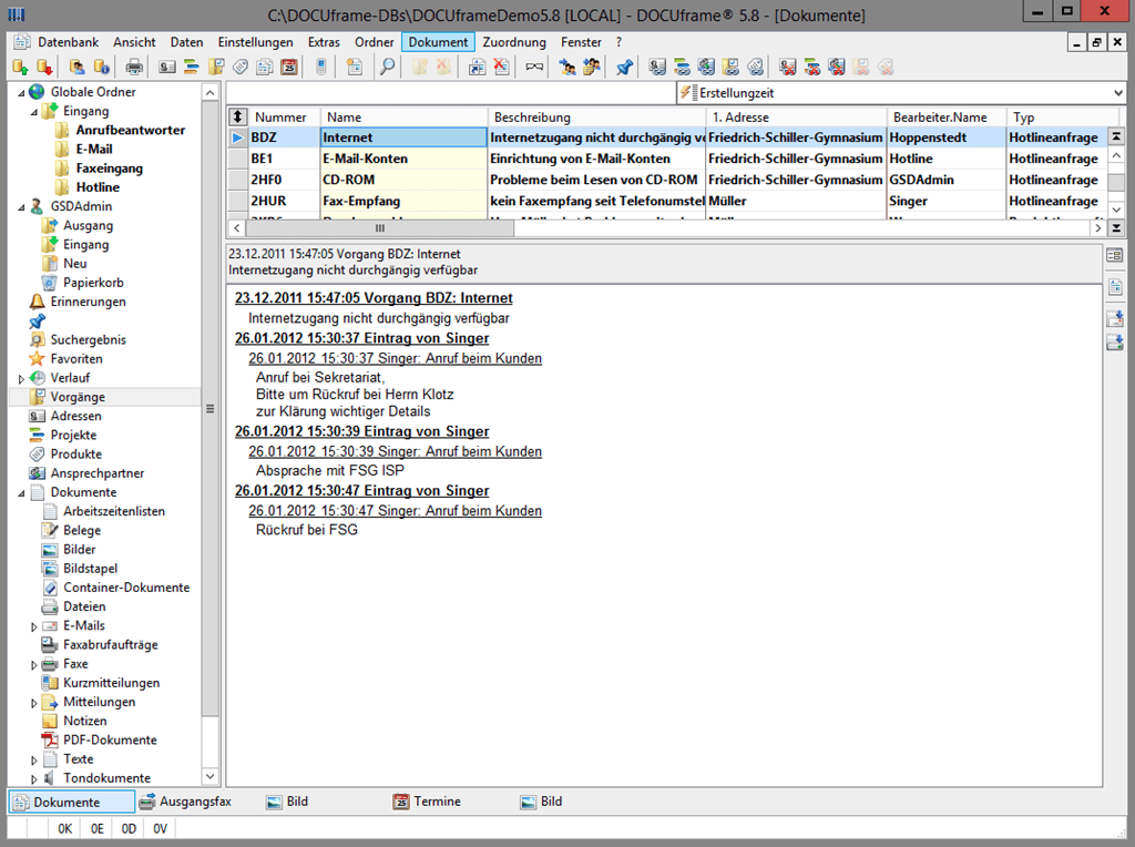 DOCUframe®, die Komplettlösung für Dokumentenmanagement, Archivierung, Kommunikation und Workflow, basiert auf einer effizienten, objektorientierten 32-Bit Client-Server Datenbank. Die objektorientierte Struktur von DOCUframe® bietet eine ausgesprochen transparente Datenstruktur und die Voraussetzung für logische und intelligente Abläufe.