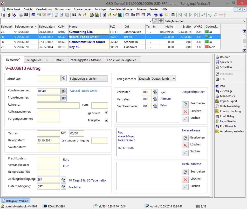 ERPframe® stellt Ihnen eine Angebots- und Auftragsverwaltung mit allen relevanten Belegen (Angebot, Auftragsbestätigung, Lieferschein, Rechnung, Gutschrift, Storno) zur Verfügung. Die Verwaltung von mehreren Liefer- und Rechnungsadressen, unterschiedlichen Belegrabatten sowie Zahlungs- und Lieferbedingungen ist genauso integriert, wie die Zuordnung zu Verkäufern, Vertretern oder Sachbearbeitern. Aus dem Angebot erstellen Sie bequem einen Auftrag. Alle Angebote, Auftragsbestätigungen, Lieferscheine, Rechnungen und Gutschriften können über die Sammeldruckfunktion ausgedruckt werden. Unterschiedliche Währungen und Belegsprachverwaltung sind selbstverständlich. ERPframe® verfügt über eine Verknüpfung zum Recherchieren über Kunde, Vorgang und Beleg zu DOCUframe®, der Komplettlösung für Dokumentenmanagement, Archivierung, Kommunikation und Workflow.