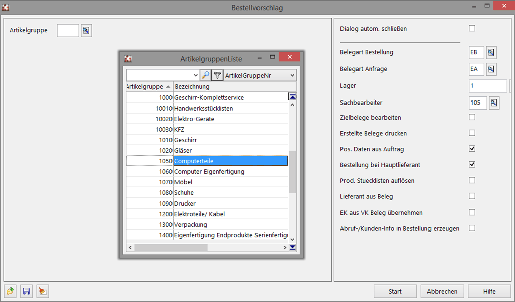Bestellvorschläge werden aus der Lagerverwaltung (mindestbestandsbezogen) aus Aufträgen (auftragsbezogen) und aus der Produktion (produktionsbezogen) erstellt. Bei der Erfassung von Bestellvorschlägen können Einkaufspreismengen, Währungen, Lieferdaten, Lieferantenkopfdaten, abweichende Lieferanschriften und Mandantendaten frei definierbar hinterlegt werden. Artikel werden lieferantenspezifisch zusammengefasst. Auf Knopfdruck erhalten Sie eine Übersicht über alle offenen und teilgelieferten Bestellungen. Durch telefonische oder schriftliche Bestellung kann eine Übernahme in den Wareneingangsstatus erfolgen.
