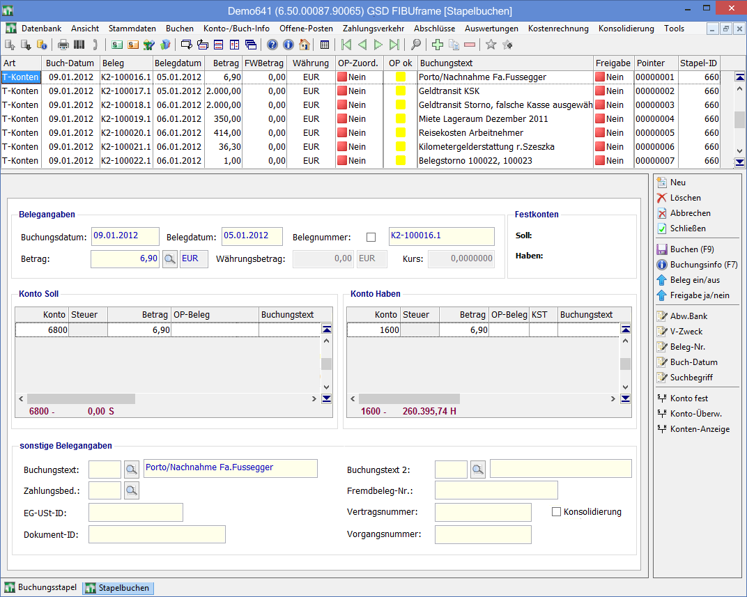 Die Datenerfassung der Buchungen wird durch zahlreiche Funktionen erleichtert, wie beispielsweise: