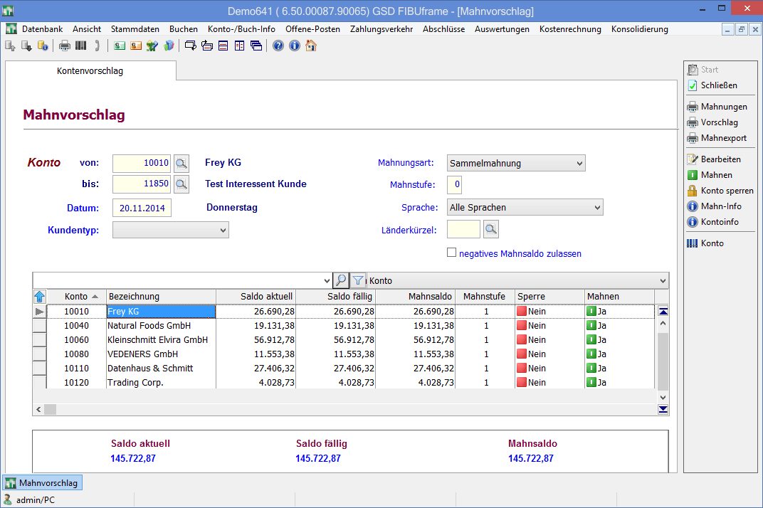- Mahnvorschläge mit manueller Eingriffsmöglichkeit